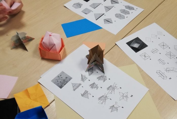 Gruodžio 2 dieną 6a, 7a ir Ib klasių mokiniai dalyvavo edukaciniame užsiėmime „Nuo plokštumos iki erdvinės formos“. Mokiniai sužinojo, kad origami yra naudojama grafiniame ir industriniame dizaine, rūbų ir pakuočių kūrime, tekstilėje ir keramikoje, architektūroje ir teatre. Susipažino su popieriaus lankstymo pirminėmis schemomis. Matematikos pamokose įgytas žinias mokiniai pritaikė praktiškai: iš popieriaus lankstė dėžutes, gėles, erdvines figūras. Lankstydami mokiniai ne tik pakartojo žinias apie simetriją, atstumus, proporcijas, geometrines formas, erdvės supratimą, bet ir lavino rankų koordinavimą, eiliškumo bei erdvinius įgūdžius, kantrybę, susikaupimą ir dėmesį.