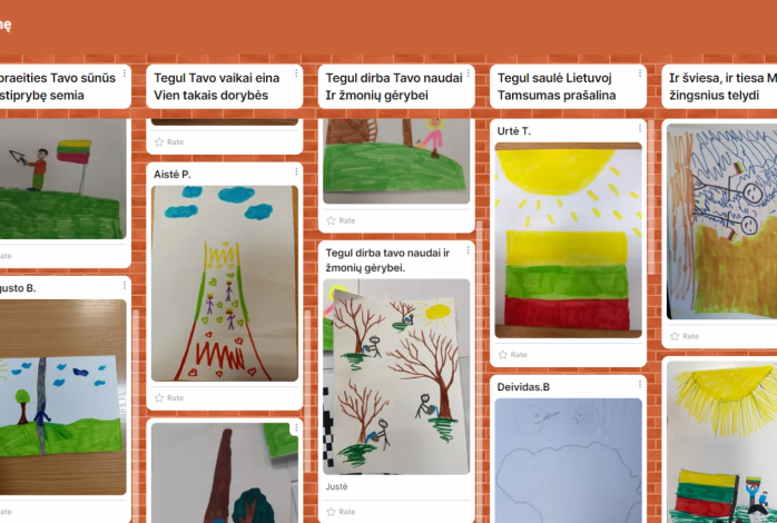 Vasario 11 d., artėjant valstybės gimimo dienai, Raseinių r. Viduklės Simono Stanevičiaus gimnazijos (mokytoja G. Tytmonienė) ir Akmenės r. Ventos gimnazijos (mokytoja A. Jokubauskaitė-Sinkevičienė) šeštokai, dalyvavo projekto „Bendradarbiaujančios klasės“ Didžiausioje pamokoje. Mentimeter aplinkoje dalinosi savo mintimis apie Lietuvą, rinko spalvas, kurios primena gimtąją šalį, rašė gražiausius lietuviškus žodžius, minėjo puikiausius tautiškumą atspindinčius vardus, prisiminė, nagrinėjo ir iliustravo V. Kudirkos „Tautišką giesmę“. Bendros diskusijos ir darbo metu, mokiniai skaičiavo kiek valstybei, „Tautiškai giesmei“ ir patvirtintam šalies himnui metų. Iliustruoti V. Kudirkos kūrinį buvo ir įdomu, ir smagu. Piešiniai, iliustruojantys himną, patalpinti į bendrą klasių Padlet aplinką, kuri leis vėliau pasitikrinti dėliojamas puzzle iš „gyvų“ pačių sukurtų „Tautiškos giesmės“ iliustracijų.