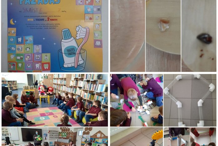 Ilgalaikės veiklos metu mokiniai lankėsi bibliotekoje ir skaitė knygutę „Kakė Makė ir dantukų Fėjos puota". Aptarę pagrindinę mintį, kaip reikia rūpestingai prižiūrėti dantukus ir norint patekti į dantukų Fėjos pilį, jie ėmėsi kūrybinės veiklos: iš tualetinio popieriaus ritinėlių statė dantukų Fėjos pilis ir STEAM koridoriuje statė tiltus, padedančius patekti į Fėjos pilį.