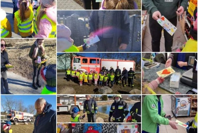 Gimnazijos priešmokyklinio ugdymo grupės „Bitutės“ bei „Smalsučiai“ prisijungė prie Raseinių darželio „Saulutė“ organizuojamos akcijos „Komplimentas Lietuvai“, skirtos Kovo 11 dienai paminėti. Grupėse vaikučiai piešė piešinėlius bei gamino atvirutes, skirtas Lietuvai. Kovo 10 d. vaikai keliavo Viduklės miestelio gatvėmis, sveikino ir dalino savo kurtas atvirutes sutiktiems praeiviams. Taip pat su švente pasveikino ir parduotuvių darbuotojus. Daug įspūdžių vaikams suteikė ir atsitiktinis susitikimas prie miestelio tvenkinio su priešgaisrinės gelbėjimo tarnybos ugniagesiais. Tikimės, kad visiems suteikėme džiaugsmo. Sveikiname visus su švente!