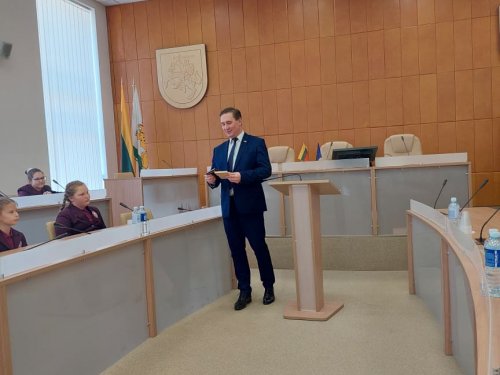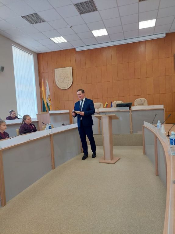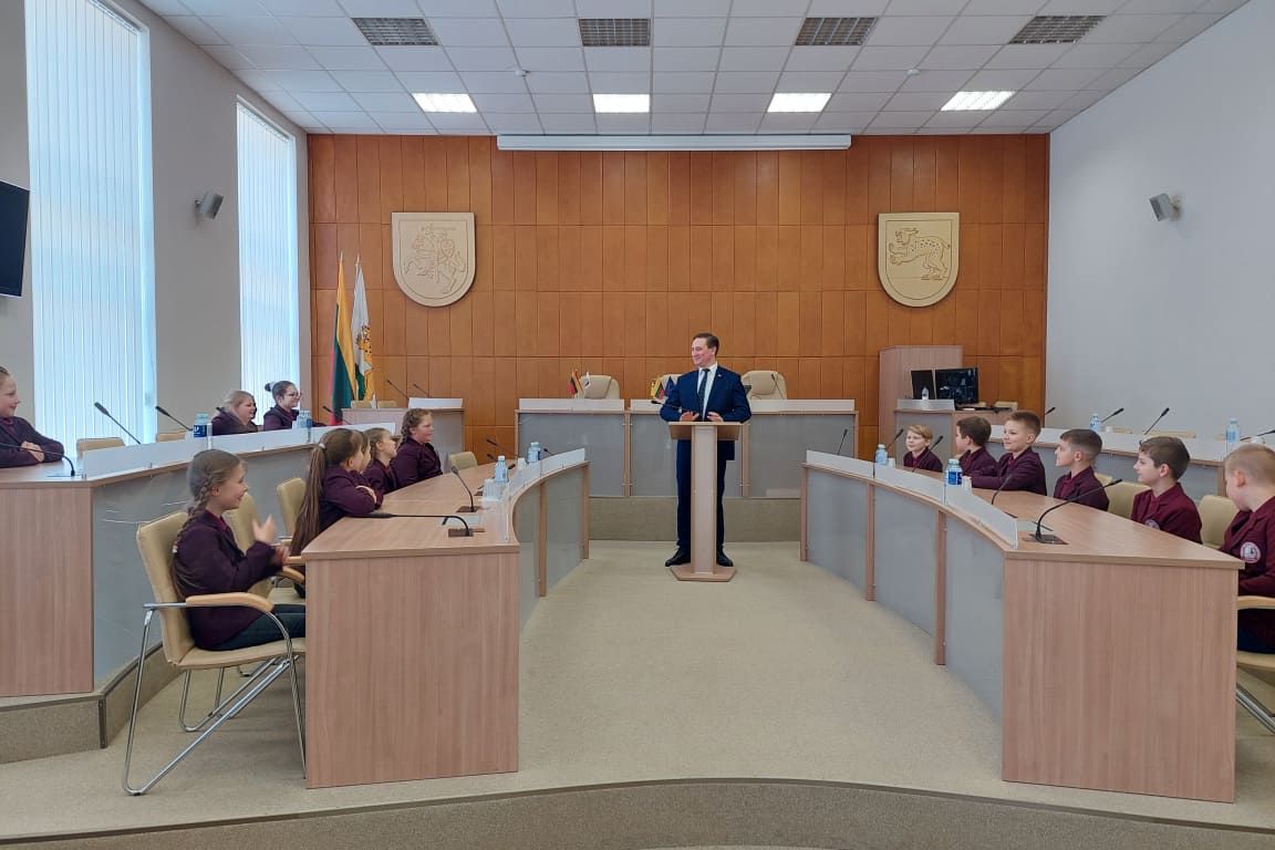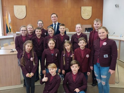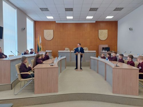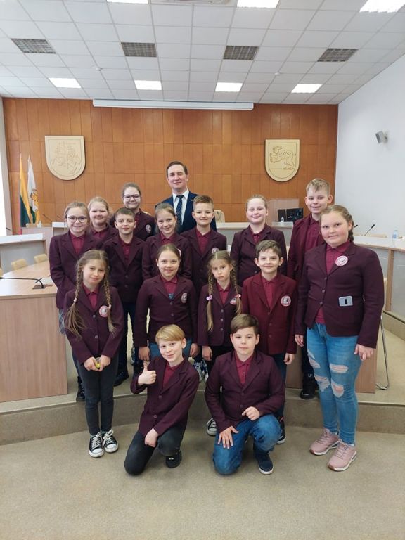 Taip pat vaikai domėjosi mero darbo diena, kokios jo pareigos, kokių savybių reikia, kad būtum išrinktas miesto meru, mokiniai su didžiuliu susidomėjimu klausėsi ir klausinėjo, juos meras priėmė į tarybos posėdžių salę. Labai džiaugiamės, kad gerbiamas meras pažadėjo apsilankyti mūsų gimnazijoje bei 3a klasėje.