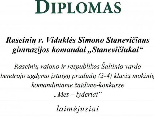 Penktadienį, balandžio 29 d. Raseinių r. Viduklės Simono Stanevičiaus gimnazijos III a klasės mokinės Eglė Vispolskytė ir Viktorija Vaištaraitė bei II b klasės mokinės Neda Baukytė ir Monika Vaznytė dalyvavo Raseinių rajono bendrojo ugdymo mokyklų mokinių integruotoje gamtos mokslų konferencijoje „Gamta. Mokslas. Žmogus", kurią organizavo Raseinių Prezidento Jono Žemaičio gimnazija. Konferencijoje, vykusioje Dubysos regioninio parko direkcijoje, III a klasės mokinės pristatė gimnazijos mokinių atliktą Viduklės tvenkinio ekologinės būklės tyrimą (vadovė biologijos mokytoja metodininke Virginija Petrošiene). II b klasės mokinės pristatė šviesos ribinio atspindžio kampo nustatymo tyrimą (vadovė fizikos vyresnioji mokytoja Odeta Lukauskaite). Mokinės konferencijoje išklausė ir 9 kitų ugdymo įstaigų pranešimus, apsilankė direkcijos įrengtoje kompozicijoje. Čia įgijo žinių apie Dubysos regioninį parka, Raseinių kraštą. Iš konferencijos merginos grįžo ne tuščiomis - buvo apdovanotos padėkomis ir regioninio parko dovanėlėmis.