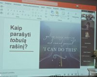 Sausio 28 d. IVa klasės mokiniai dalyvavo netradicinėje lietuvių literatūros pamokoje – susitikime su VU prancūzų filologijos studentu, buvusiu mūsų gimnazijos mokiniu Egidijumi Skužinsku. Studentas aptarė rašinio kūrimo žingsnius, priminė svarbiausias samprotavimo ir literatūrinio rašinio struktūros dalis, kiek svarbus rašinyje kontekstas bei argumentavimas.
