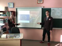 Pradinių klasių mokiniai visą savaitę ruošėsi paminėti Europos dieną: susiskirstė grupėmis, pasirinko šalį, apie ją rinko informaciją ir kūrė plakatus. Penktadienį trečiokai ir ketvirtokai pilietiškumo rytmečio metu pristatė sukurtus plakatus visiems pradinių klasių mokiniams.