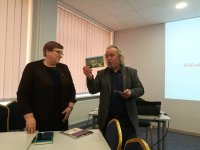 Pirmadienį, kovo 25 d., istorijos mokytoja Gintarė Tytmonienė ir IIa gimnazijos klasės mokinys Andželas Gvazdauskas dalyvavo pokyčio projekto „Renkuosi mokyti – mokyklų kaitai" istorijos pasakotojams skirtuose mokymuose. Profesionalūs lektoriai Andrius Ivanovas ir Vytautas Kontrimas dalinosi patirtimi apie viešojo kalbėjimo įgūdžius.